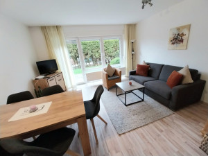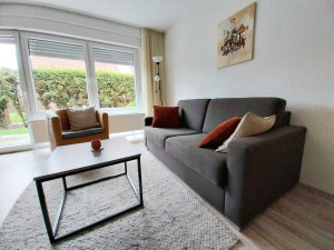 - Nicht einsehbare mittelgroße Südterasse mit kleinem Garten und zwei Relaxstühlen
